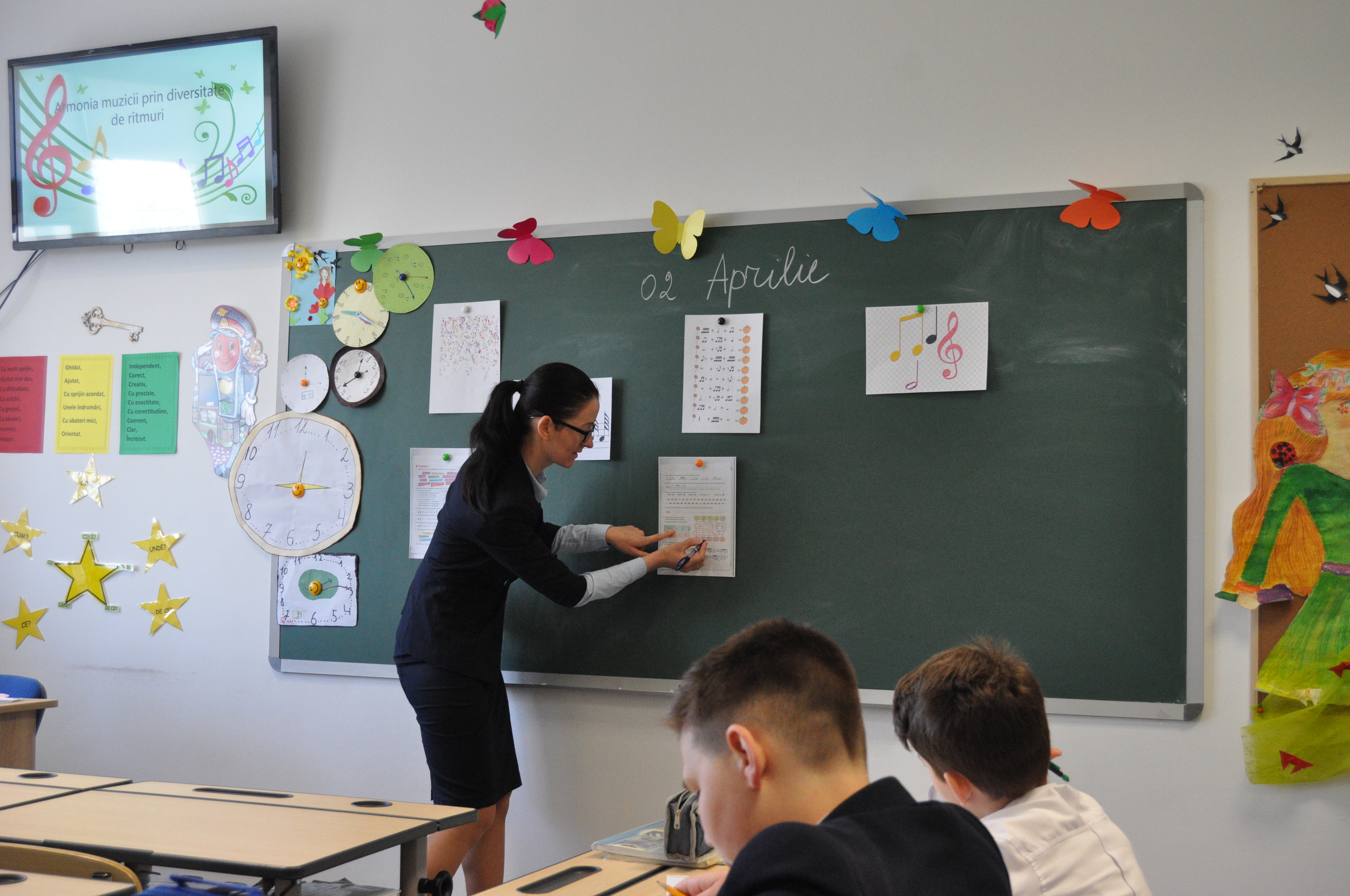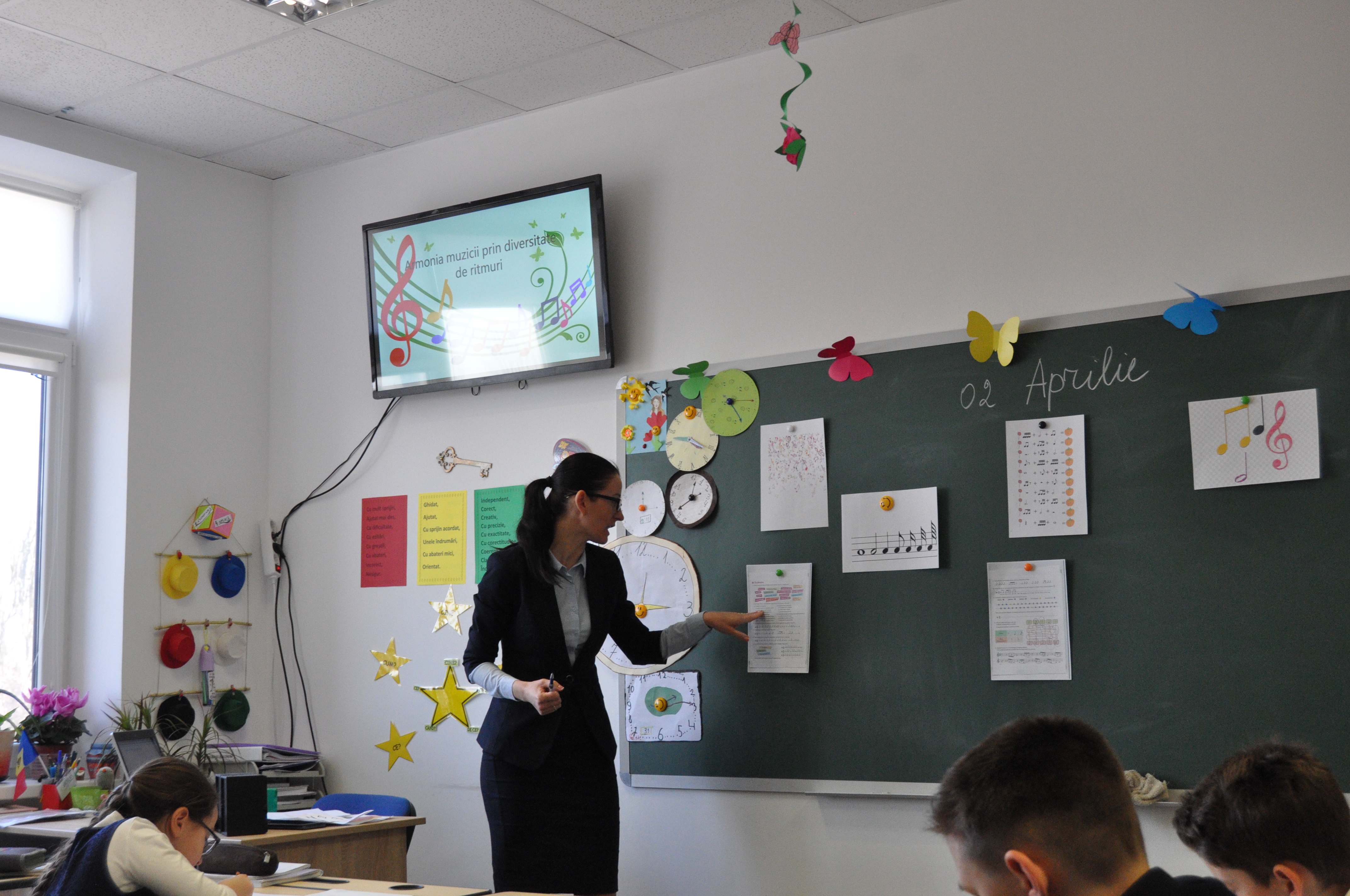 Elevii clasei a IV-a au participat astăzi în cadrul unei lecții publice excepționale cu genericul „Armonia muzicii prin diversitate de ritmuri”, organizată de către Aliona Jentimir, profesoară de muzică și pian.