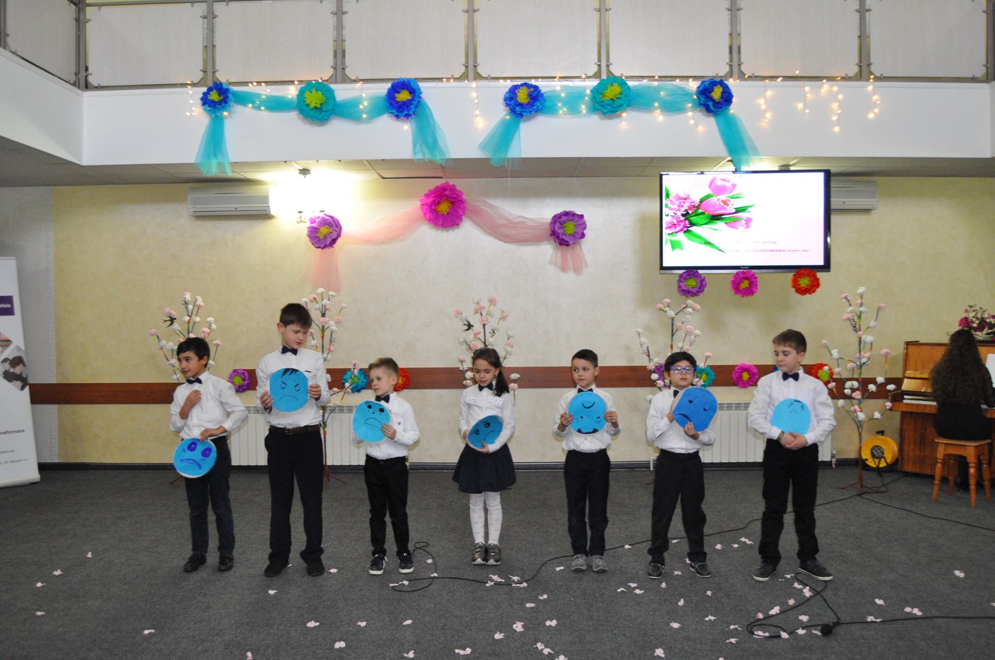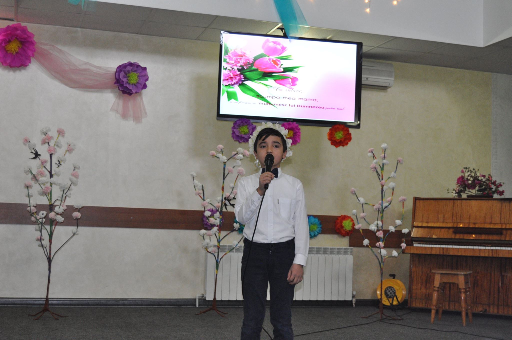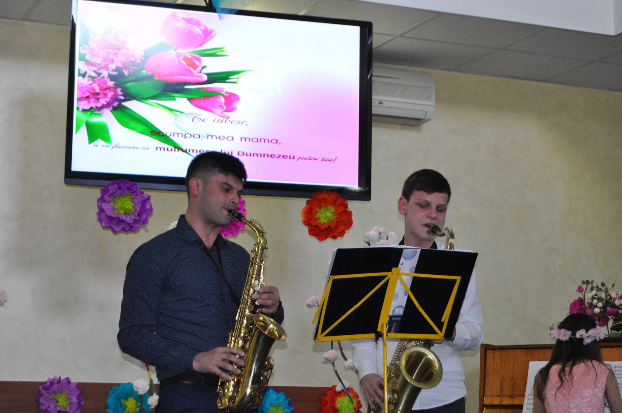 De asemenea, nu a lipsit nici muzica instrumentală la saxofon și pian. În final, mamele au primit și felicitări din partea copiilor dar și coronițe frumoase din flori.
