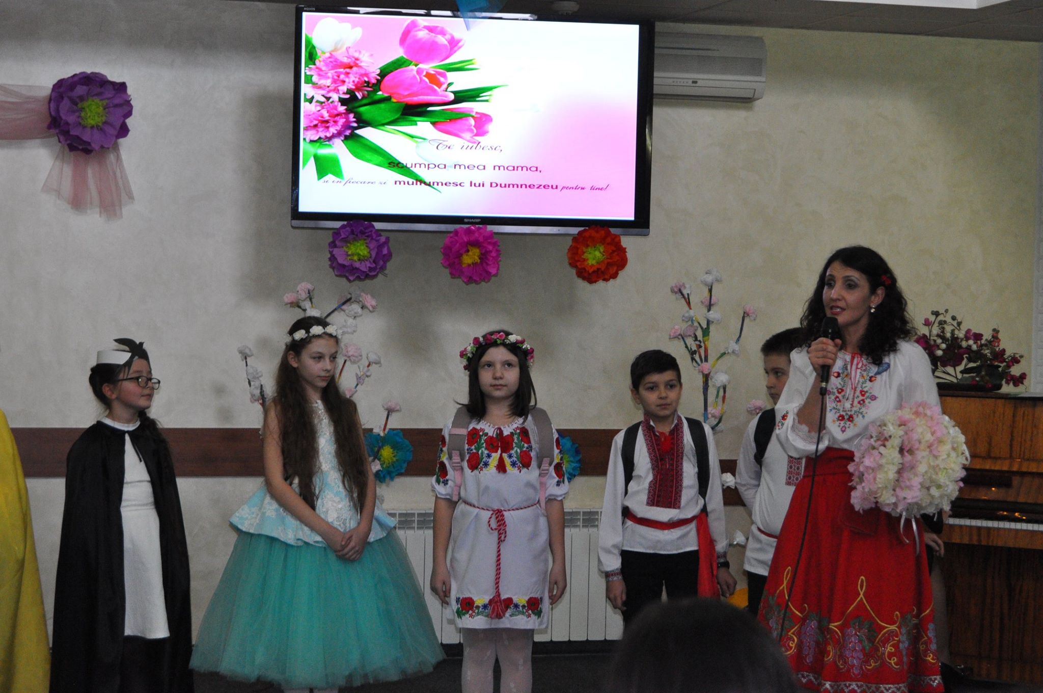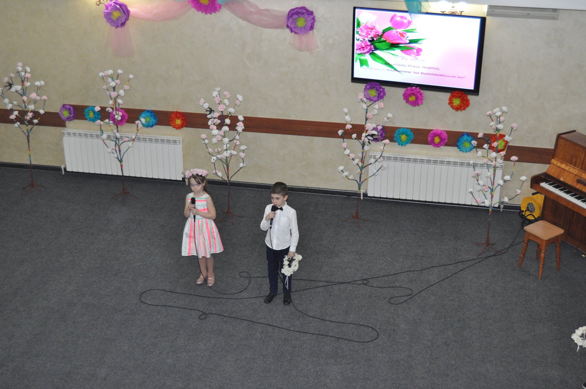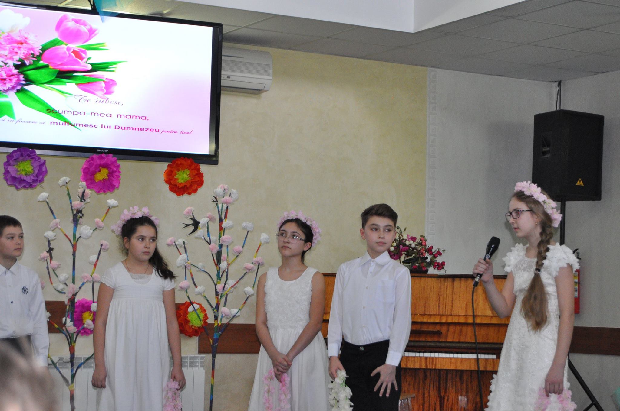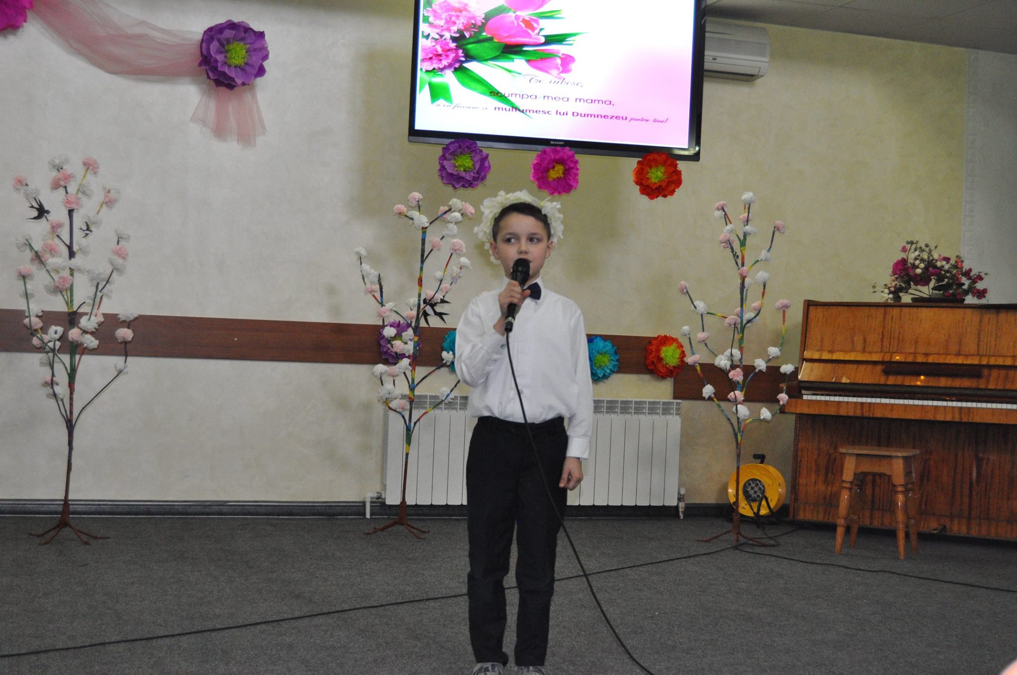 De asemenea, nu a lipsit nici muzica instrumentală la saxofon și pian. În final, mamele au primit și felicitări din partea copiilor dar și coronițe frumoase din flori.